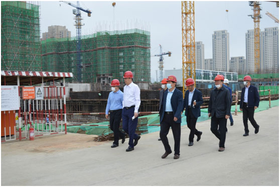 啟動儀式開始前,各位領導參觀施工現(xiàn)場整體提升式腳手架、鋁模板、文明施工及安全防護標準化設施。
