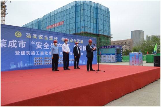 6月3日上午,榮成市2021年“安全生產(chǎn)月”啟動儀式暨建筑施工突發(fā)事件應急預案演練觀摩活動在我公司承建的琥珀湖畔項目工地的舉行。省安全生產(chǎn)督導組駐榮領導,市委常委、常務副市長鄭躍文、住建局局長許勝、應急管理局局長林宏健等相關領導,及全市建筑企業(yè)負責人參加活動。
