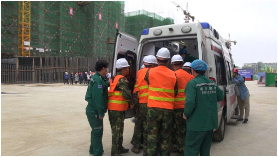 啟動儀式結(jié)束后,與會人員現(xiàn)場觀摩了由我公司組織的建筑行業(yè)應急救援演練活動。演練科目包括基坑坍塌、高空墜落、消防安全。